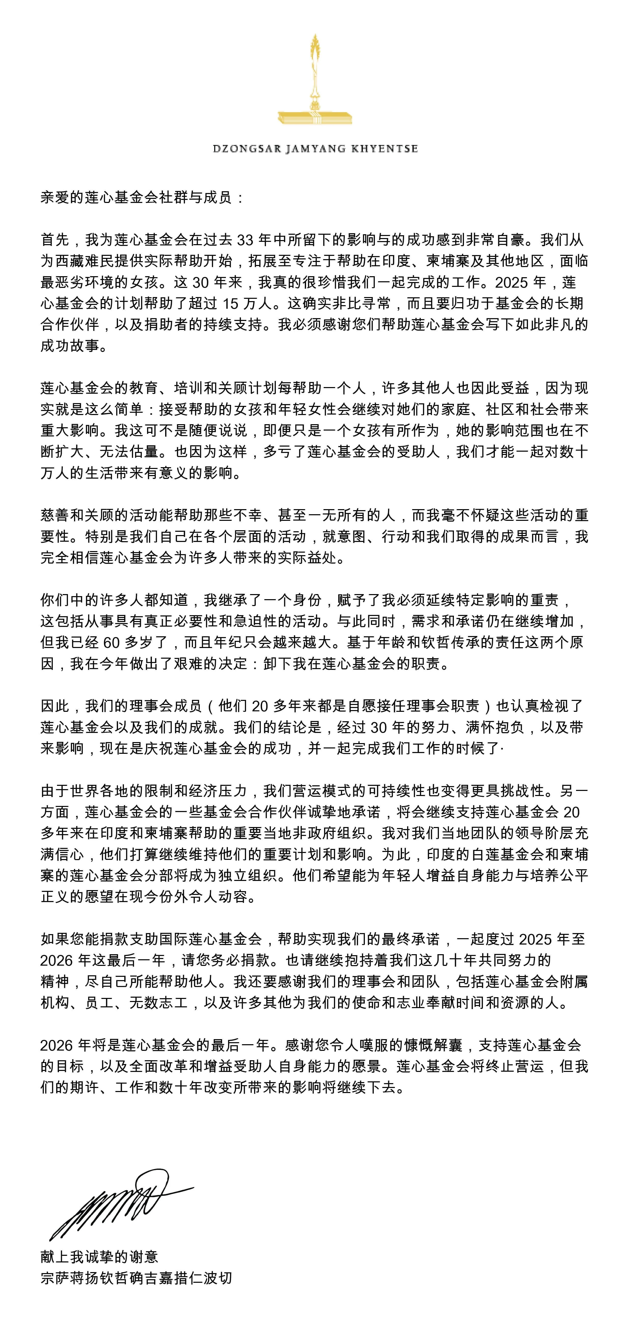 我為蓮心基金會服務了 20 年,先是擔任理事會成員,後來擔任總經理,這是我一生中最大的榮譽之一。與我們支持的年輕女性會面,親眼見證她們的力量和慷慨,深深地激勵了我。在我們進入最後一年之際,我邀請各位請一起支持我們,這樣我們才能從容應對此過渡期,並實現我們 2026 年的承諾。